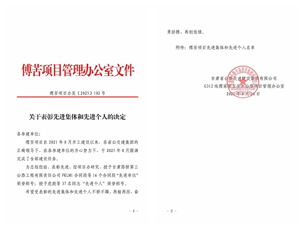 交工验收委员会在听取各参建单位工作报告并实地检查工程现场及内业资料后一致认为,该合同段已按合同及设计要求完成全部施工内容,工程质量符合国家标准,各项指标满足验收条件,同意通过交工验收。项目综合评分99.55分,在全线18家施工单位中排名第三,傅苦项目部获评“先进集体”,项目经理等多人获“先进个人”称号。
