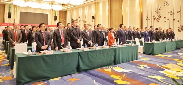 “幸福花朵用心泉浇灌,美好家园洒满阳光。慎以虑始,毅以图臻,华邦基业地久天长......”全体参会成员高唱《华邦之歌》,用铿锵有力、雄浑深厚的歌声拉开本次会议序幕。